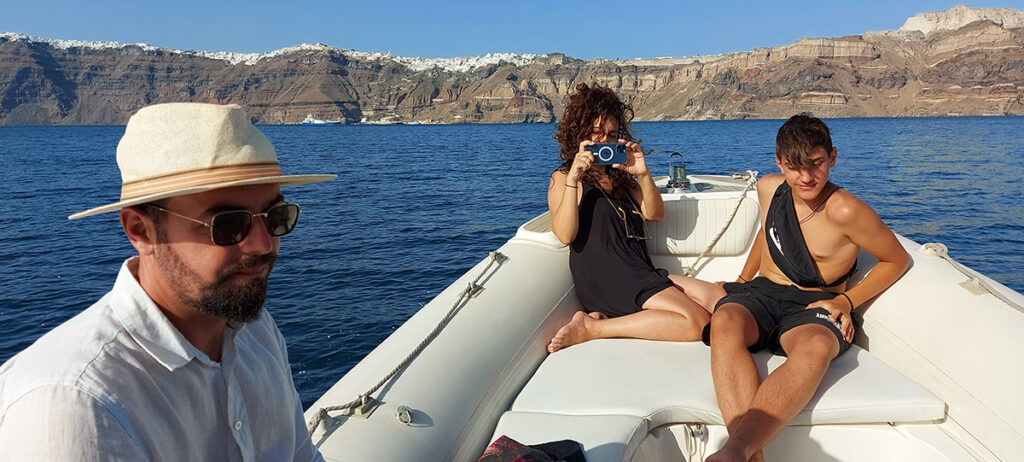 We go all around Santorini and we see all the beauties, hidden or not. We don’t just go in the caldera front part but we do the entire circle of the island! We will visit the Hot Springs where you can swim, Volcano that you can go up and see all the craters, Thirassia Island a beautiful traditional little island with 350 inhabitants to have a snack, lunch, coffee or just swim, we will continue to Oia (Ia) amoudi beach, then Red Beach and many other wonderful locations.