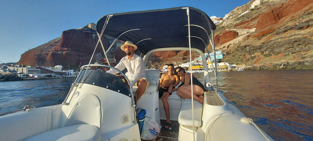 Small private Santorini boat tour for sunset or morning time tour. Enjoy the comfort and privacy of private boat tours and cruises in Santorini along with your loved ones. By choosing a private boat tour, you are sure to receive 100% of the highly trained crews’ attention and care.